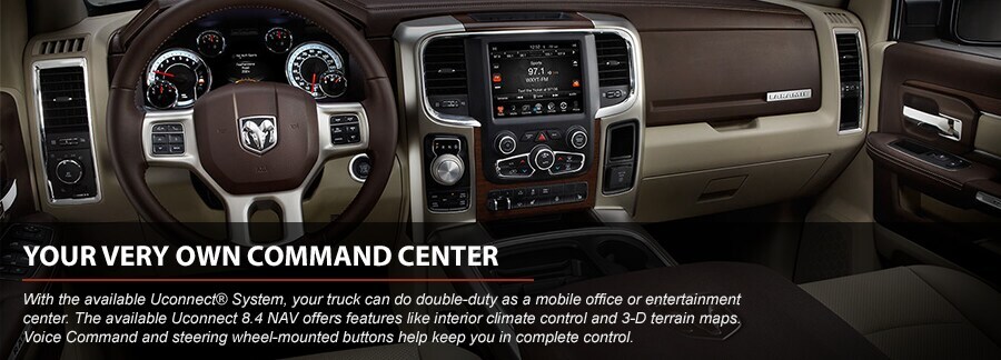 Just because you've opted for a truck doesn't mean you need to miss out on the finer things in life. The 2016 Ram 1500 can be outfitted with a number of comfort features that make every drive something to look forward to. Available Katzkin Leather Seats by Mopar® add an unmistakable air of luxury to your 1500, as does an optional wood grain instrument panel accent. Heated and ventilated front seats and heated second-row seats are available to keep you warm even in Massachusetts' coldest winter months, while a power 10-way driver seat allows you to get comfortable before long journeys. A full-length upgraded floor console is available to grant you easy-access storage, while memory for radio, driver's seat, mirrors and pedals allows your 1500 to be customized to every driver in your family.